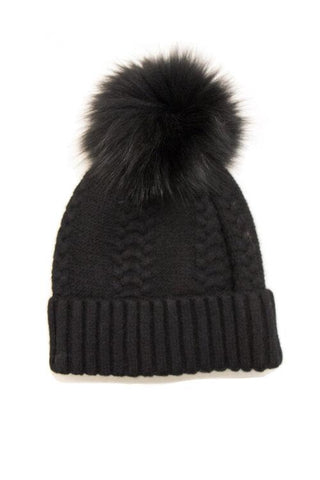 Stay warm in effortless style. This cashmere–wool blend hat offers a soft, luxurious feel and lasting warmth, topped with a genuine fur pompom for a touch of elegance. A timeless winter essential that elevates any cold-weather look.